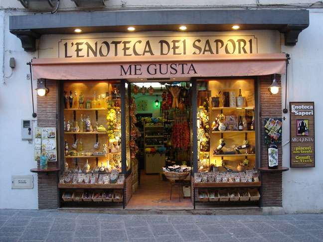 Situata nel centro storico della cittá di Forio D´Ischia, a due passi dai migliori Hotels, ricavata all’interno di un antica casa dalle spesse mura, proprio di fronte al centro cittadino, ideale per il turista, che puó soffermarsi sull´esposizione esterna, godendosi l’atmosfera del piccolo Borgo senza traffico, ma anche per feste e serate di vario genere. Me Gusta propone i grandi vini italiani da collezione, oltre 400 etichette, inoltre vi propone dei cesti regalo realizzati con prodotti di alta qualitá, tipici della “nostra isola”. Dal miele piú caratteristico, di cardo e di asfodelo, alle confetture sott'olio di prodotti tipici e non solo come il Tartufo, i dolci tipici di mandorle, la famosa pasticeria napoletana e i migliori salumi come i prosciutformaggio pecorino. Inoltre i cesti regalo rappresentati sono alcuni esempi, se ne eseguono anche personalizzati; preziosi e utili sono i minicesti con prodotti tipici da offrire agli ospiti di convegni.